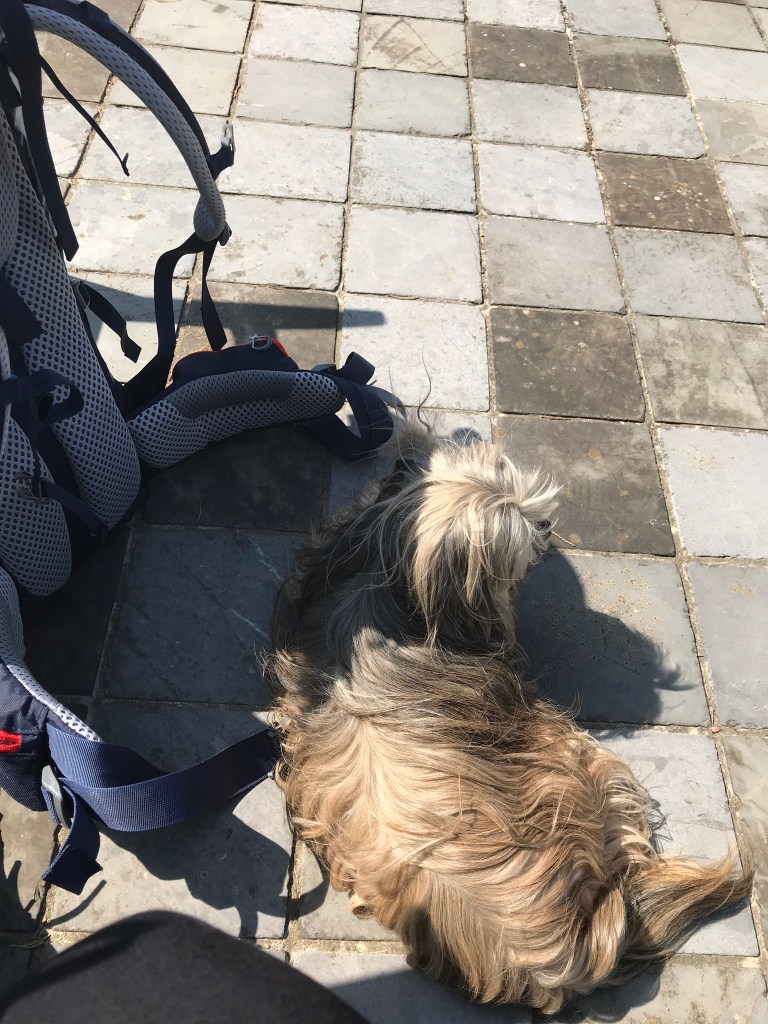 I lost all sense of shame as I entered Wisques and crept to my lodging. I wasn’t supposed to check in until 4 and it was 1, but I went and stood outside anyway, and saw a man was checking the mail. I approached him and asked if it was too early to check in. He told me to follow him and he’d see. It turns out my room wasn’t ready, but he showed me outside where I could wait, and the resident puppy followed. I scratched her head and we became buddies.