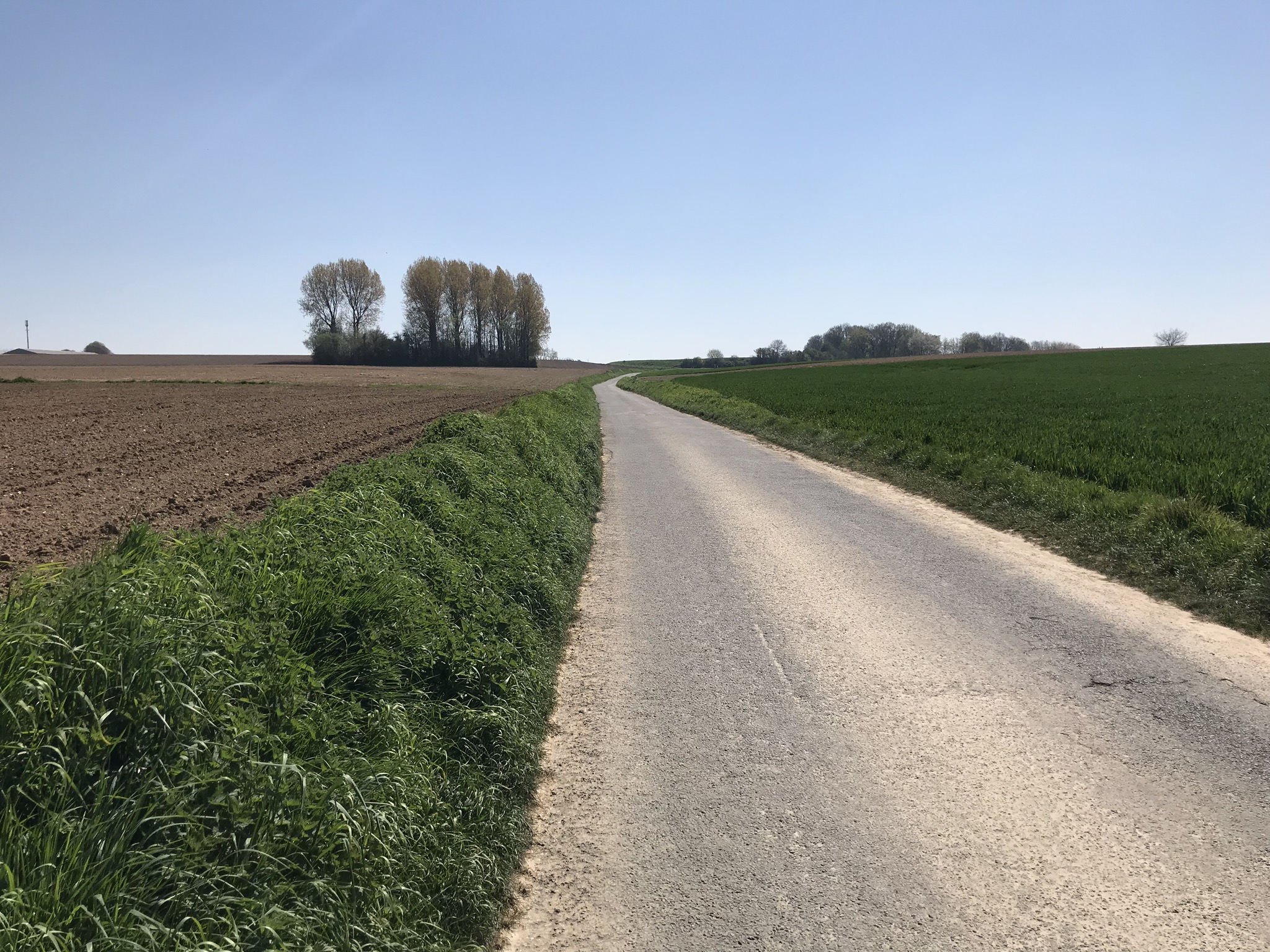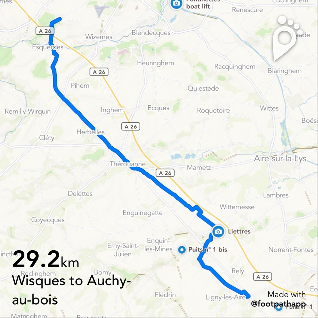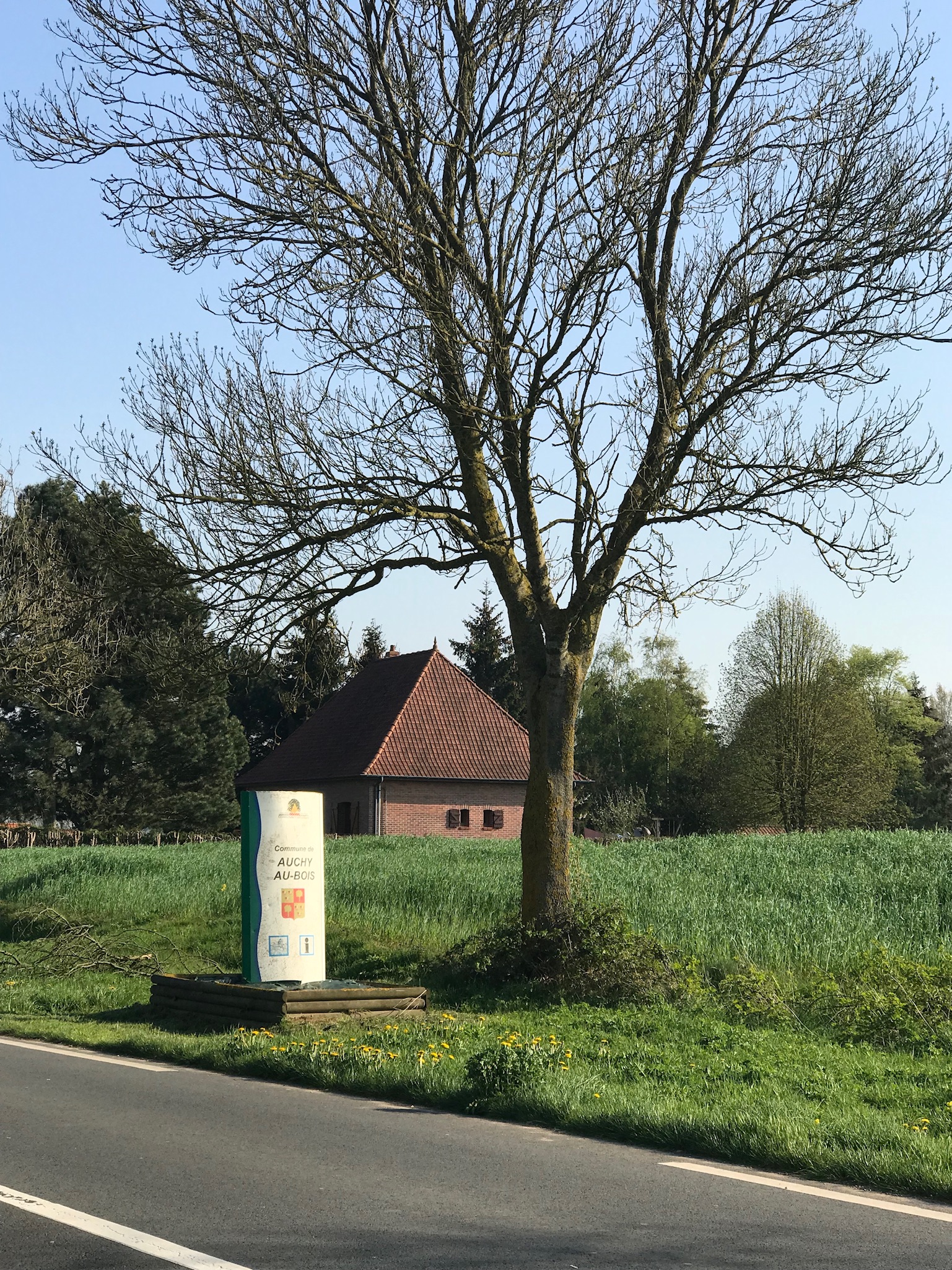 I got close to Auchy-au-bois, and when I was at the main corner where I was supposed to turn, I turned left instead of right and then backtracked. There were a couple of cafes around and a group men were standing together bemusedly watching the crazy woman wandering around the intersection. They started to approach me and I got a little uneasy, but they just wanted to help. I showed them my phone and explained I only had a little French, and one man realized I had my phone turned around and I needed to turn back to right (well, left from where I was standing at that point). I thanked them and made the short walk to my lodging (which was right on the Via Francigena path).
