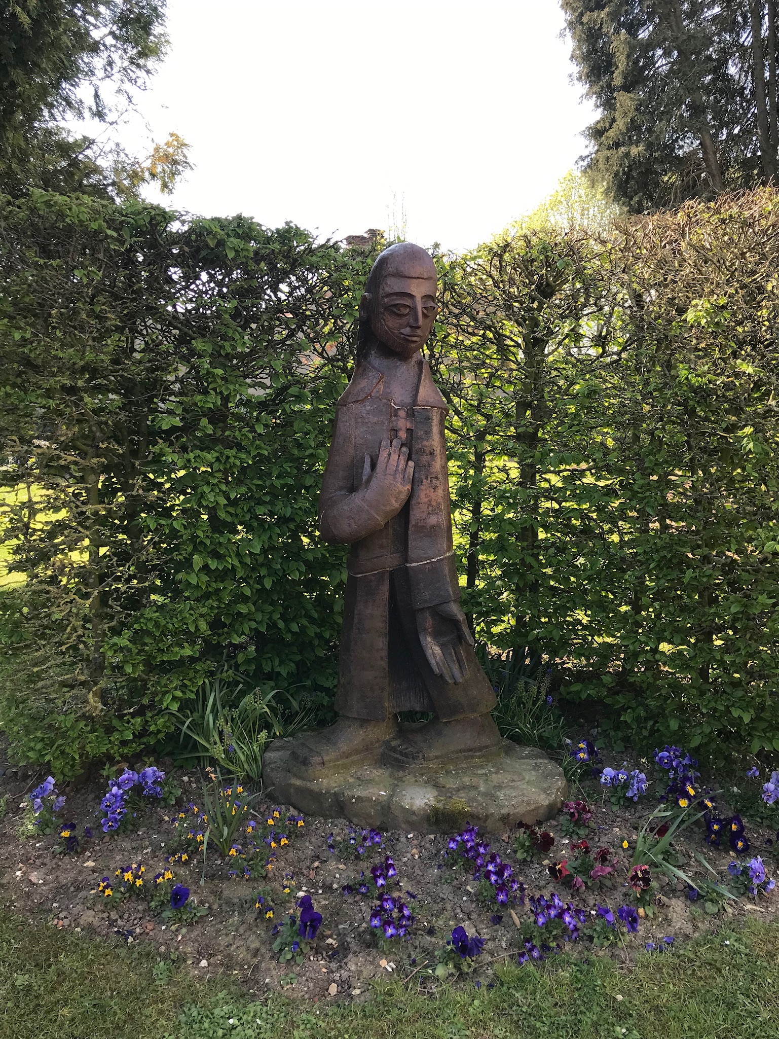 Saint Benedict Labre was a well-known pilgrim who was born in Amettes in the mid 1700s. If I understood correctly, Delphine (from Auchy) had a painting of his birth home in the kitchen of where I stayed. The statue below, in the Amettes church grounds, is of Saint Benedict Labre.