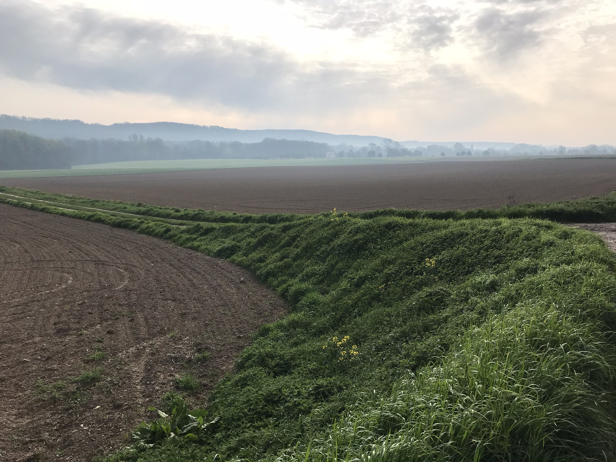 I stopped in Ecoivres to take my shoes and socks off and rest. I knew I was going to have a hard time getting to Arras. It’s not the distance or my muscles that bother me. I’m starting to get worried about my feet. There are very bad blisters on the bottoms by the toes. I alternate shoes and socks regularly and keep them as dry as I can, but it’s painful.