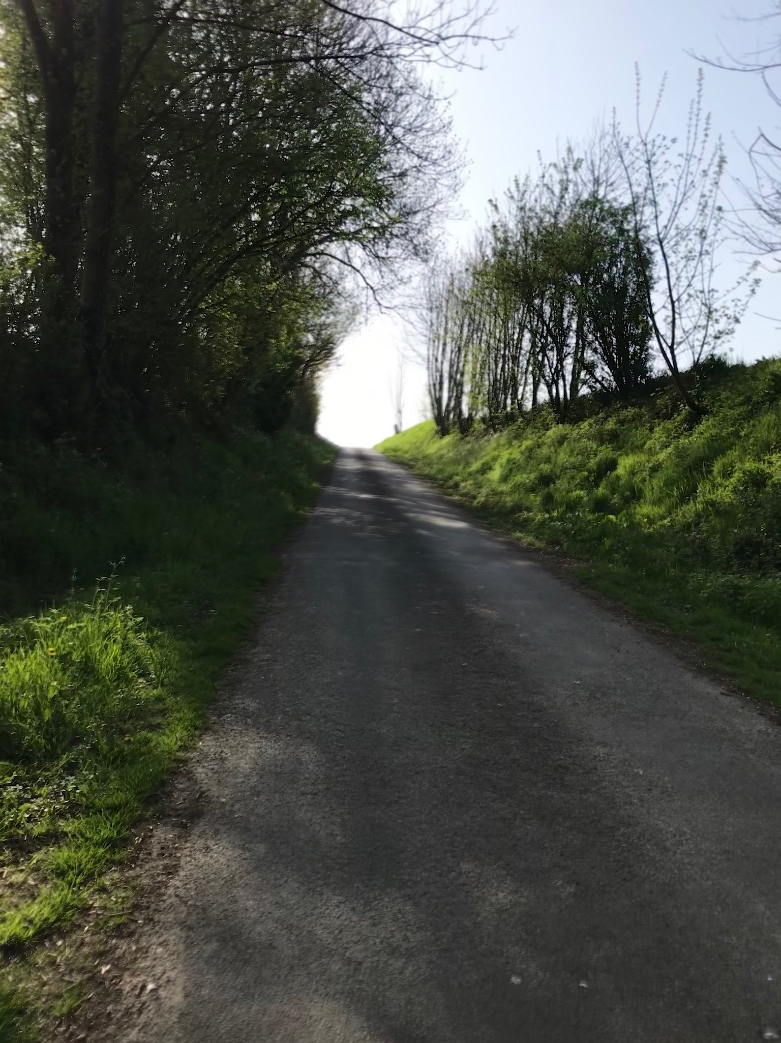 The route turned left into the village park, and from there it was mostly rural paths (with lots of hills) with brief flashes of small villages. The Monday after Easter is still a major holiday in France (at least according to Bernard), and for the better part of the morning I was walking against masses of bicyclists. The route through the hills seems to be the perfect workout for local cycling groups. It was fun having a woosh of air and a cacophony of “bonjours” ring out regularly (until it got a little tiresome 🙂 ).