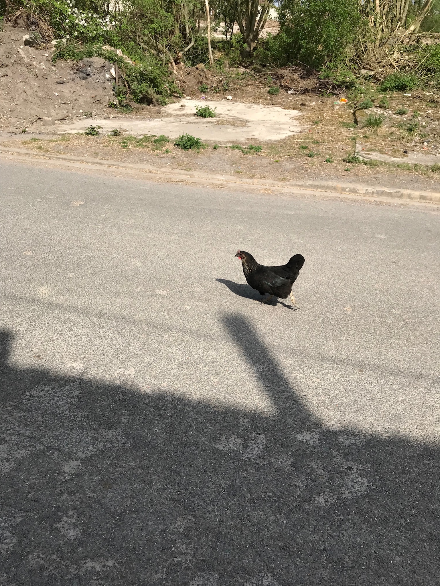 For the record: he didn’t cross the road. He ran around in circles and then went back the way he came. 🙂