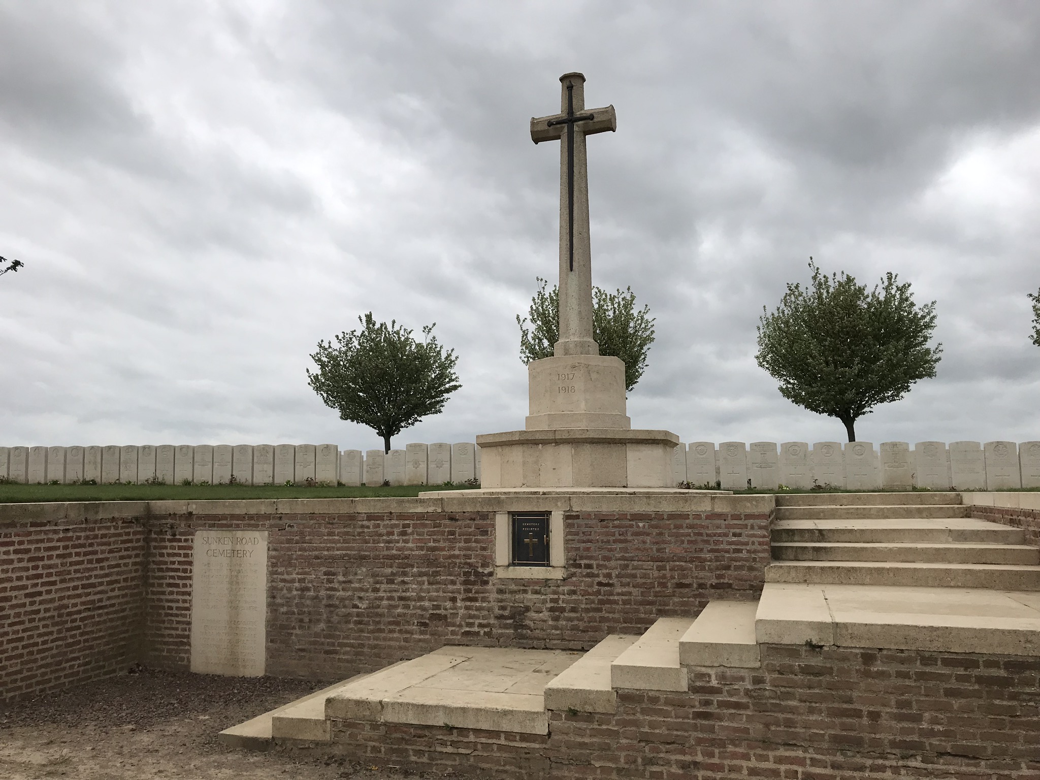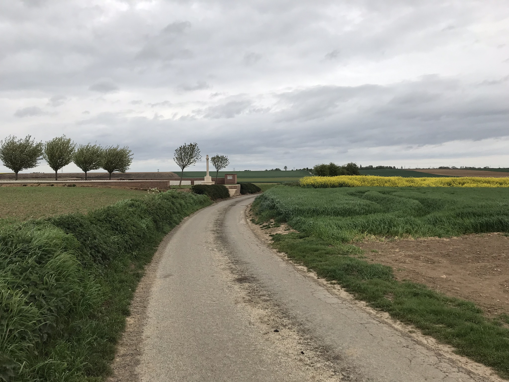 Shortly after entering Boisleux-Saint-Marc I encountered the WWI Sunken Road Cemetery. The fallen were from various places, including Germany.