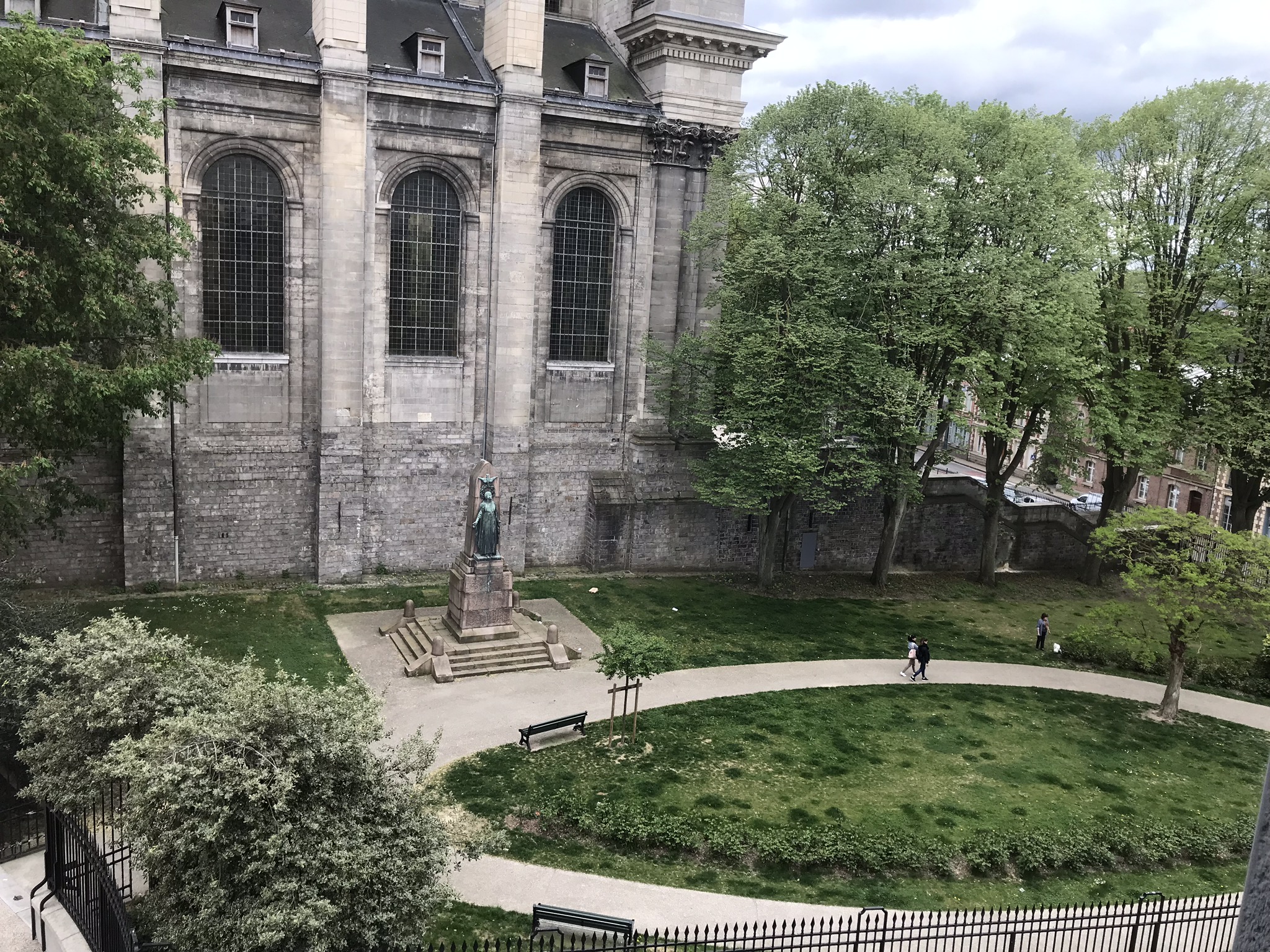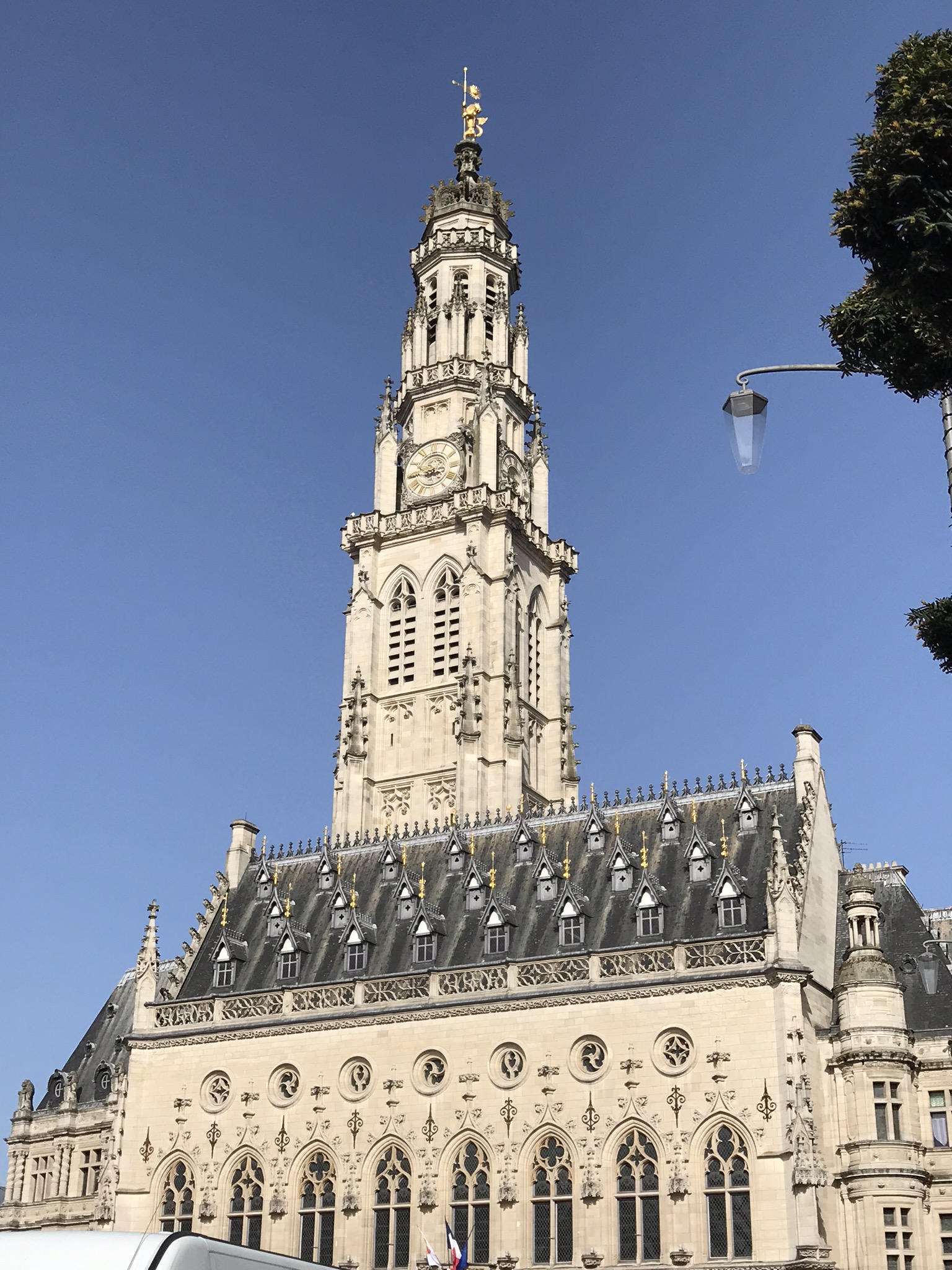 Luckily there was a pharmacie two doors down, a boulangerie 1 block down, and a fromagerie 2 blocks up. ๐ I was also right across from Arras cathedral (those bars to the left were for the cathedral park), and the bell tower was a 5 minute walk up.