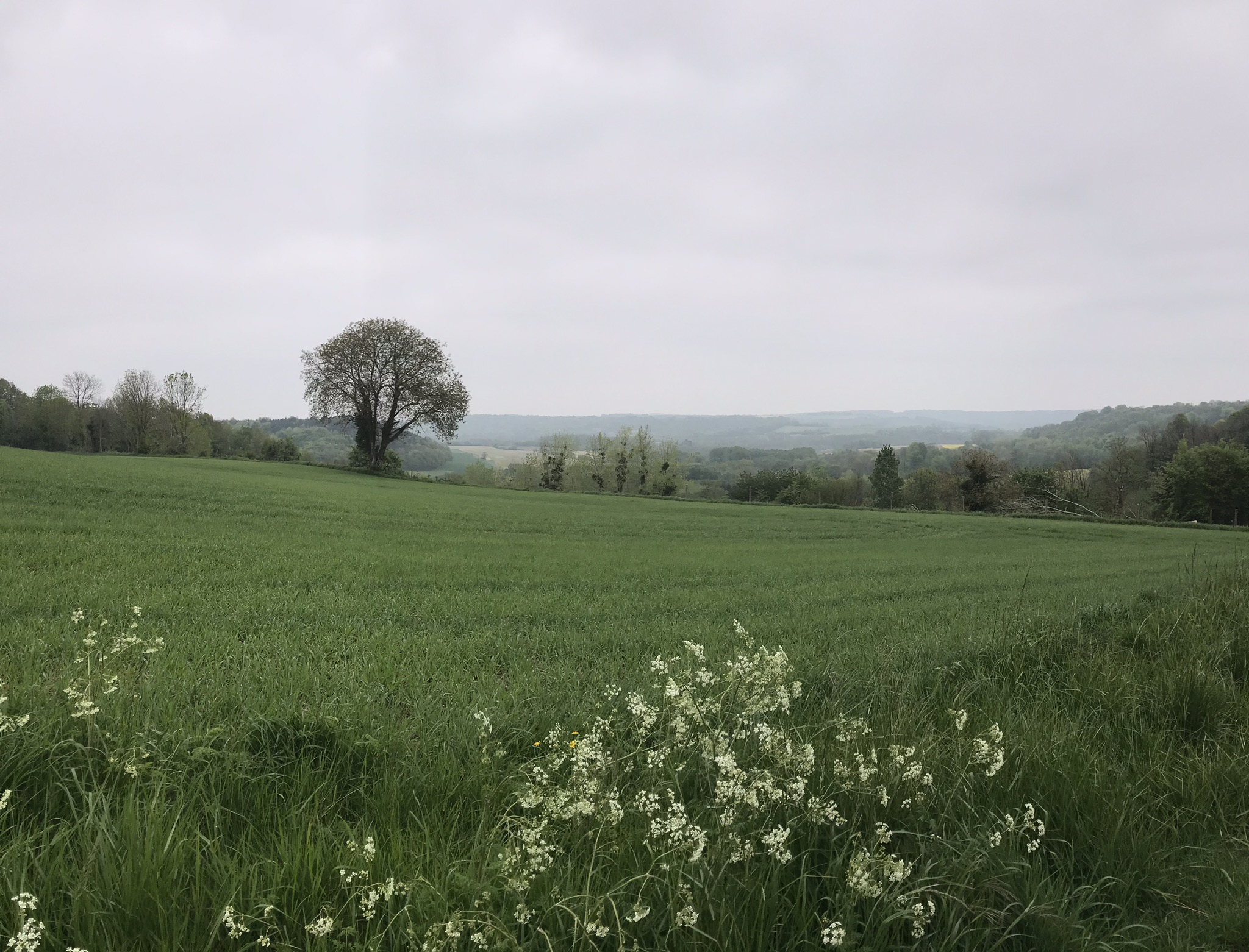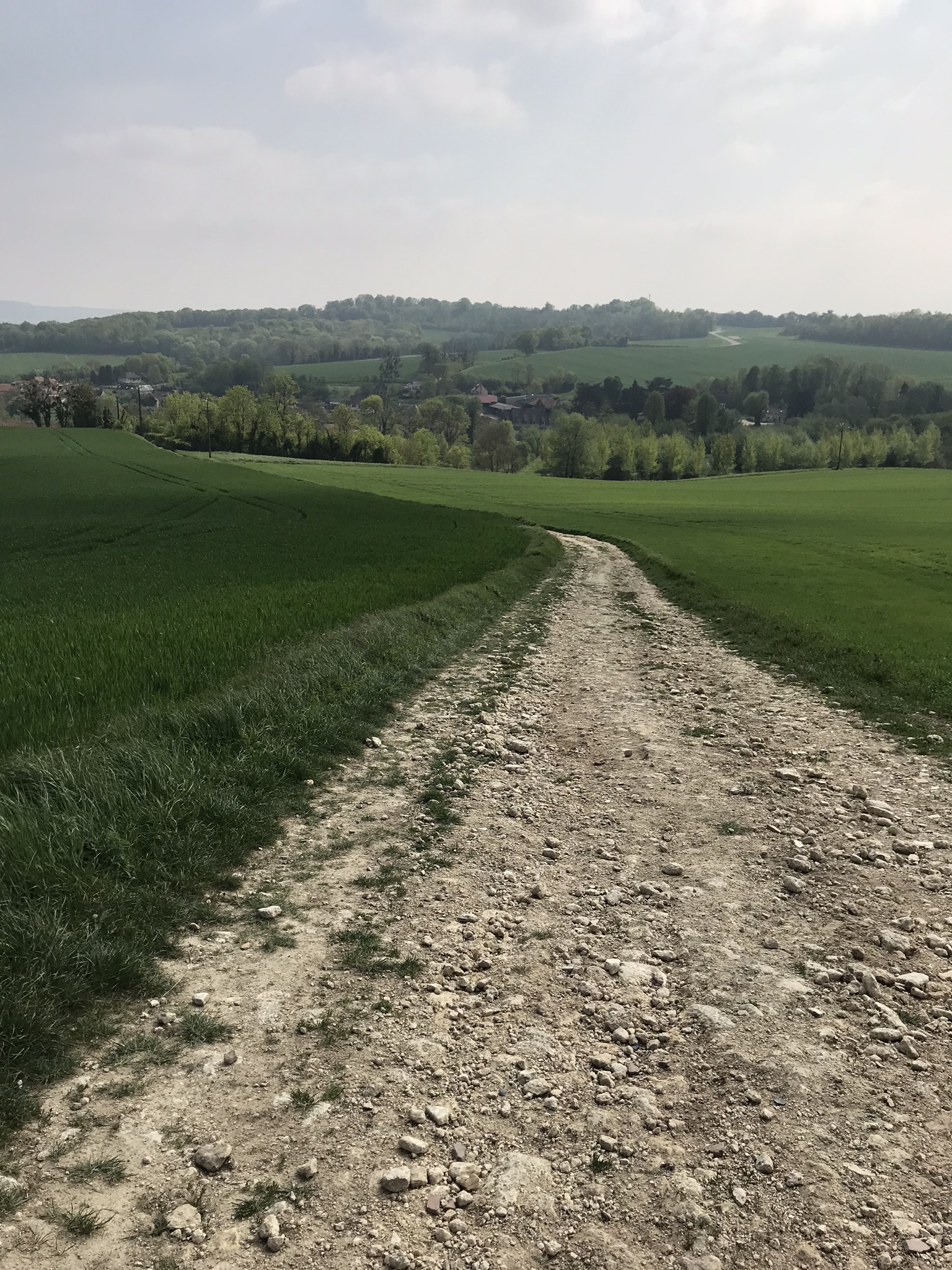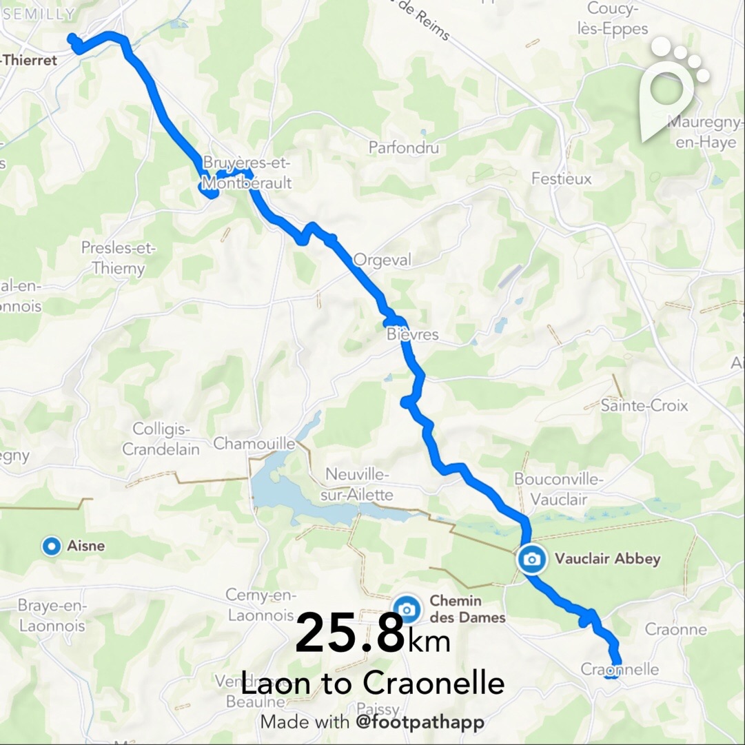 It was a beautiful day with beautiful scenery. The terrain shift I felt approaching Laon continued as I walked away: hills giving way to pretty valley views.