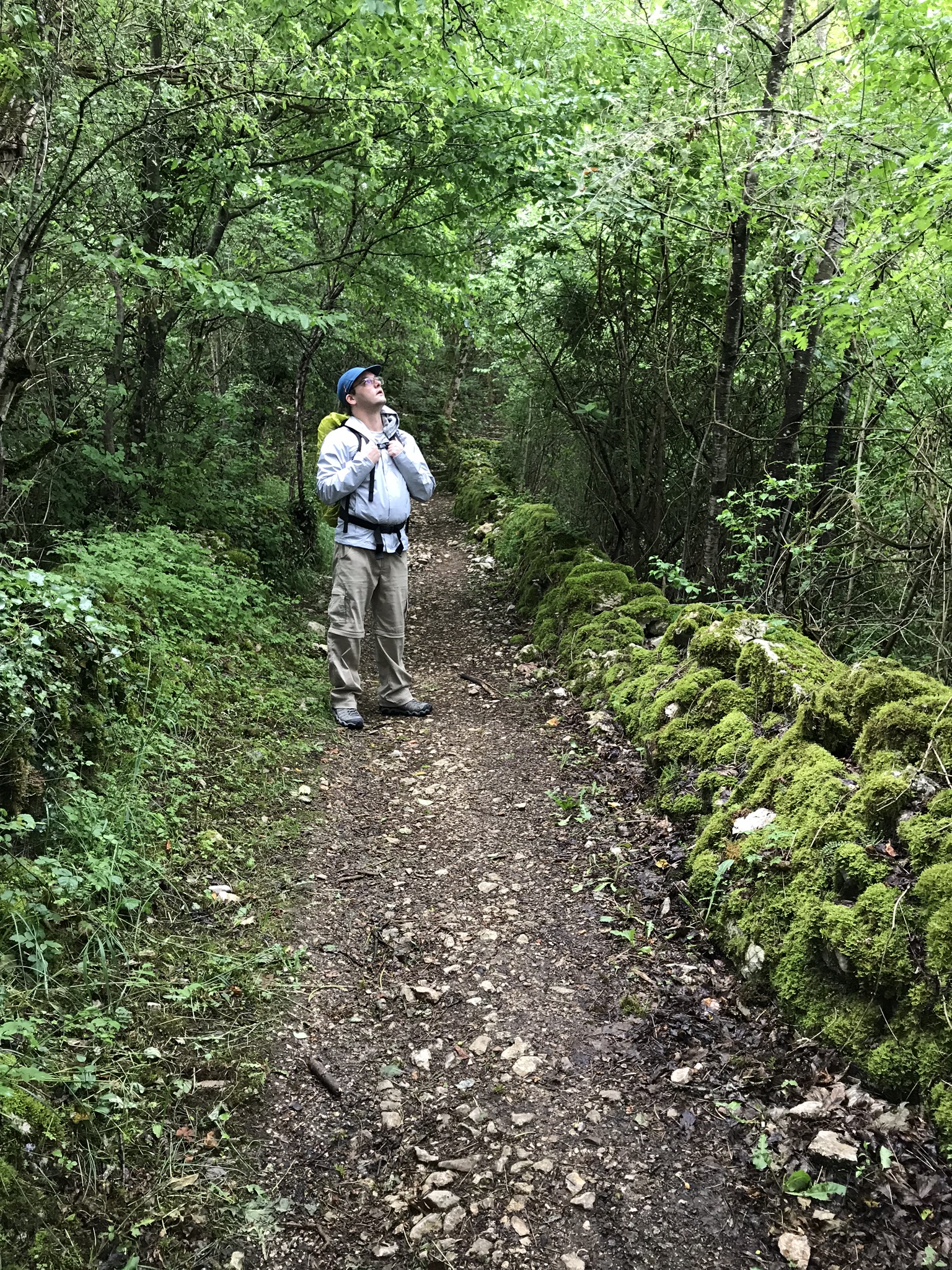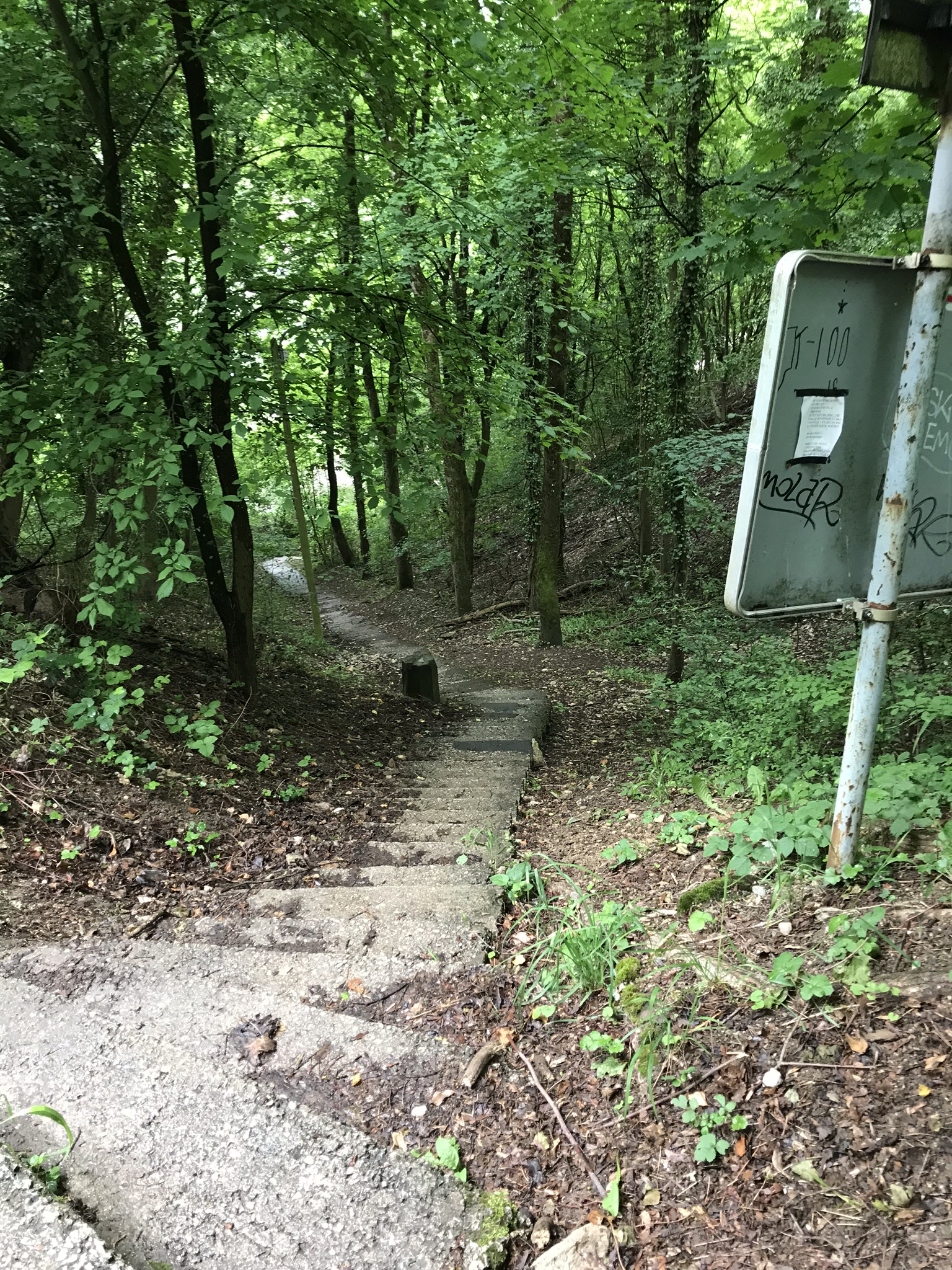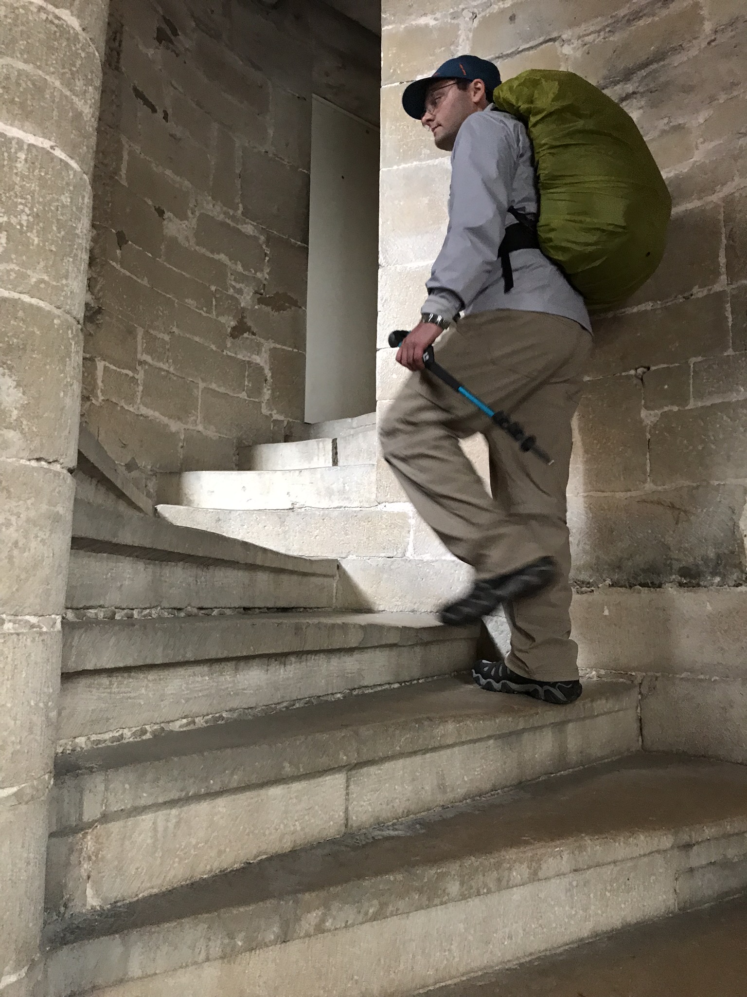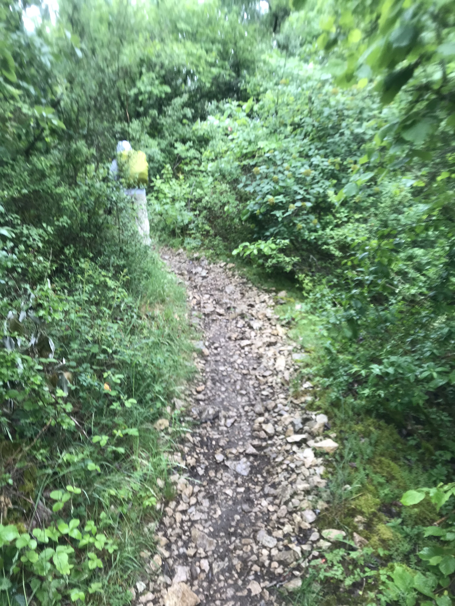 After following the river out, the path took a sharp left up into the hills. We are working our way into the foothills of the Jura mountains and the elevation was no joke. Early in the day there was a 13% level incline. In print that seems like nothing, but if you walk a treadmill at 13% with a pack for about 20 minutes, you’ll get a feel for the experience 🙂 Seeing these steps was actually a relief!