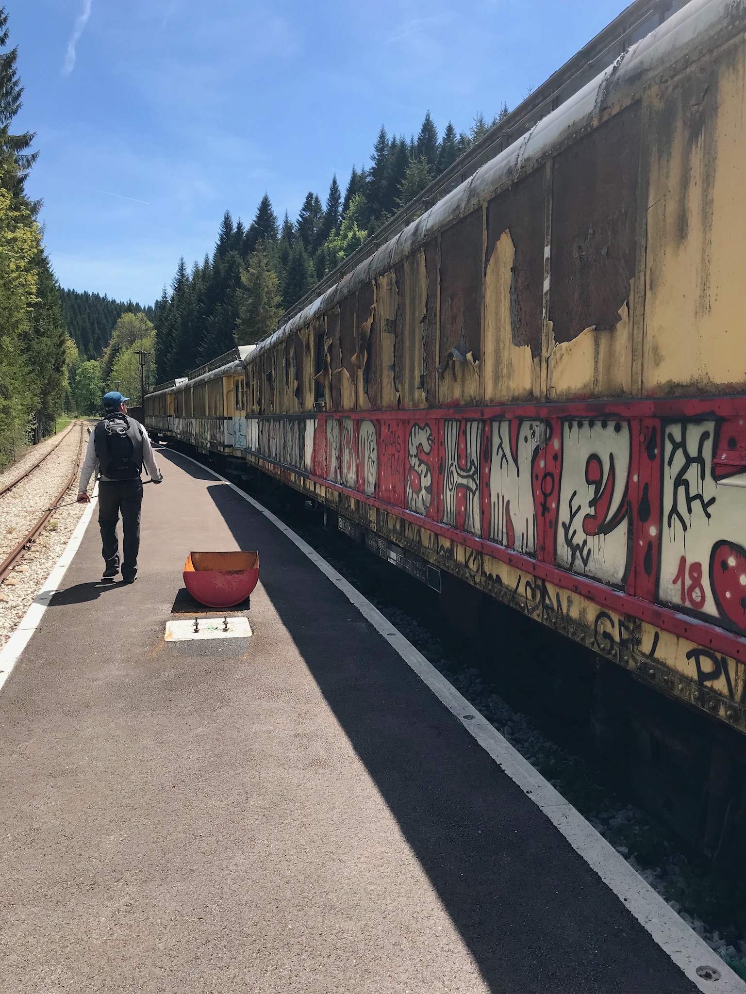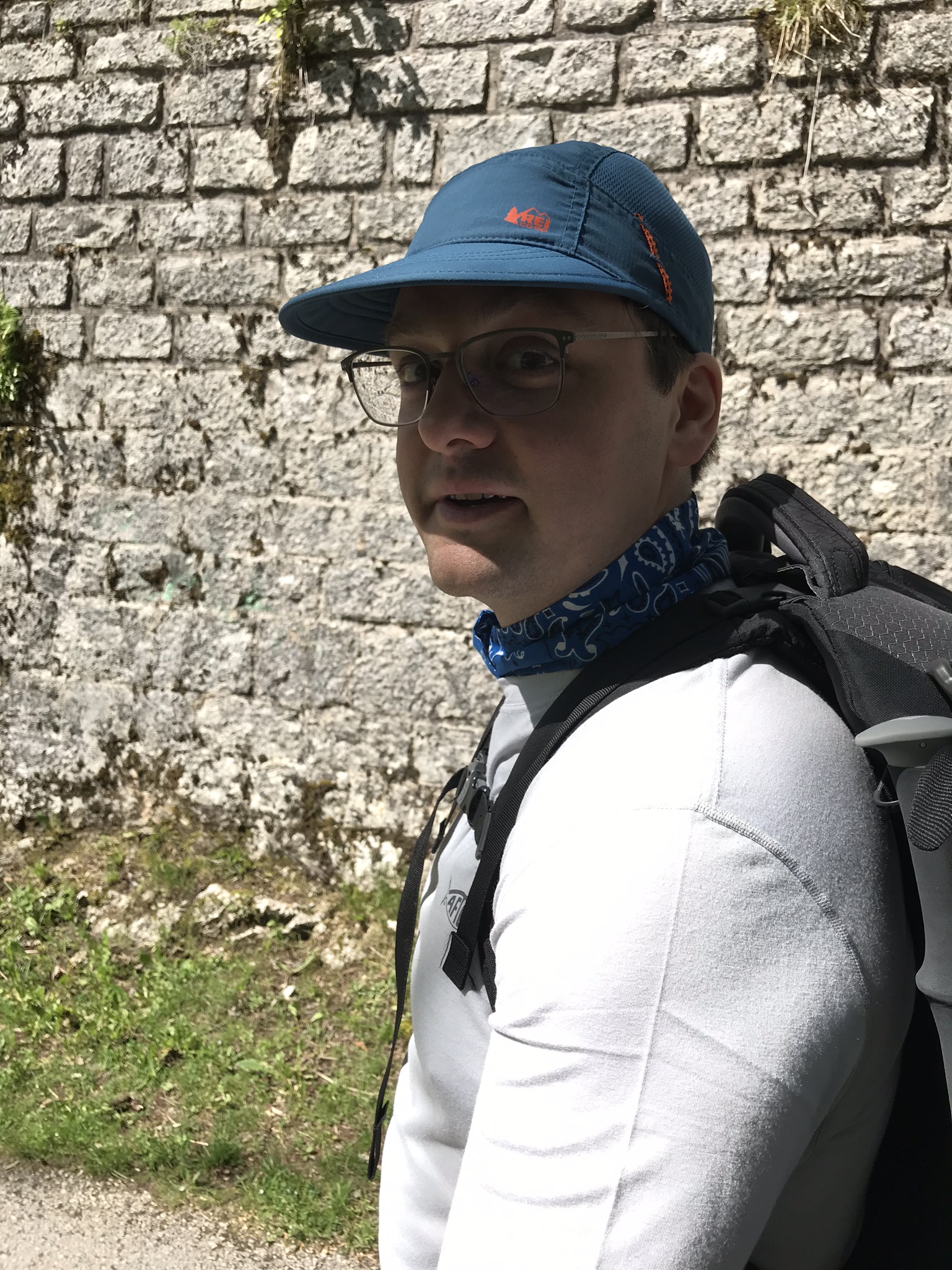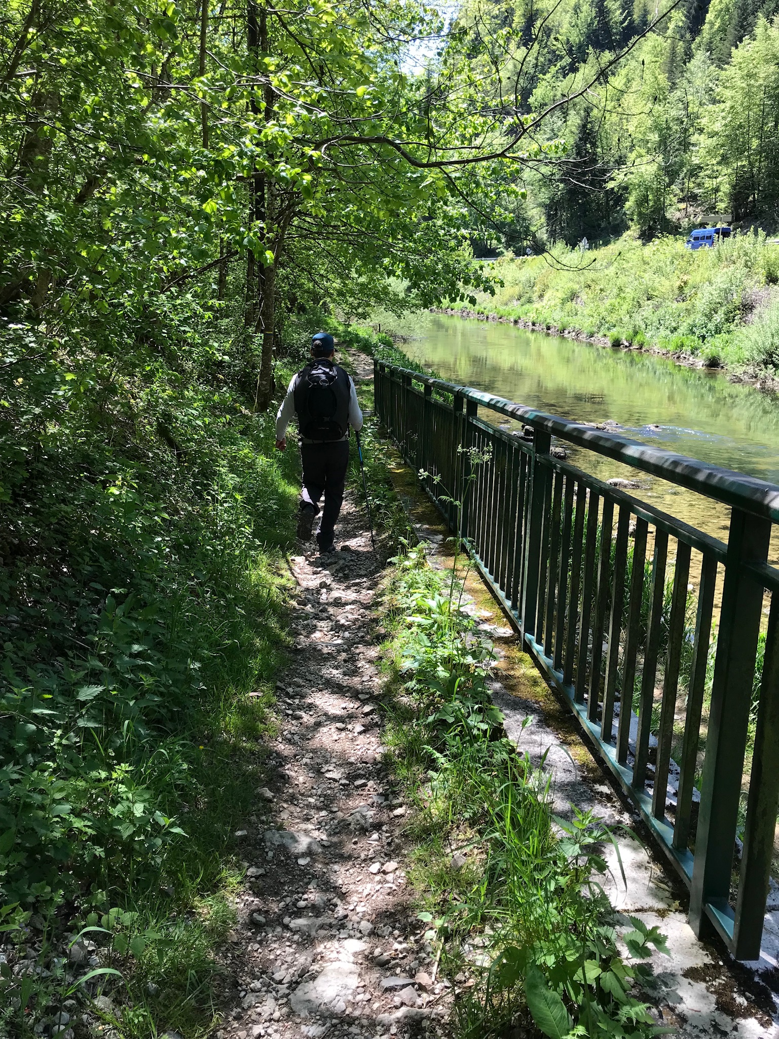 We had a leisurely morning and left Pontarlier around 11am. We left through the old arch and quickly joined the Doubs River footpath out of town. It was a beautiful and warm day.
