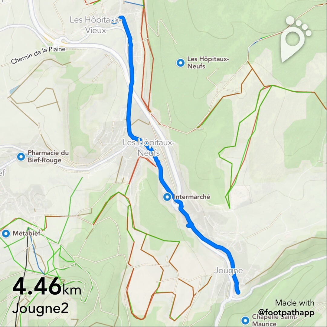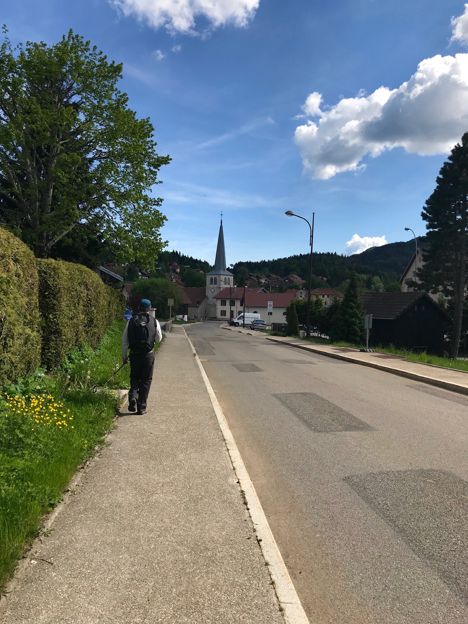 After a while we got tired of trying to find the route and just walked a few miles along the major road to Jougne and then broke off into the village of Les Hopitaux Vieux, where I got my bearings and re-charted the final 4 km into Jougne.
