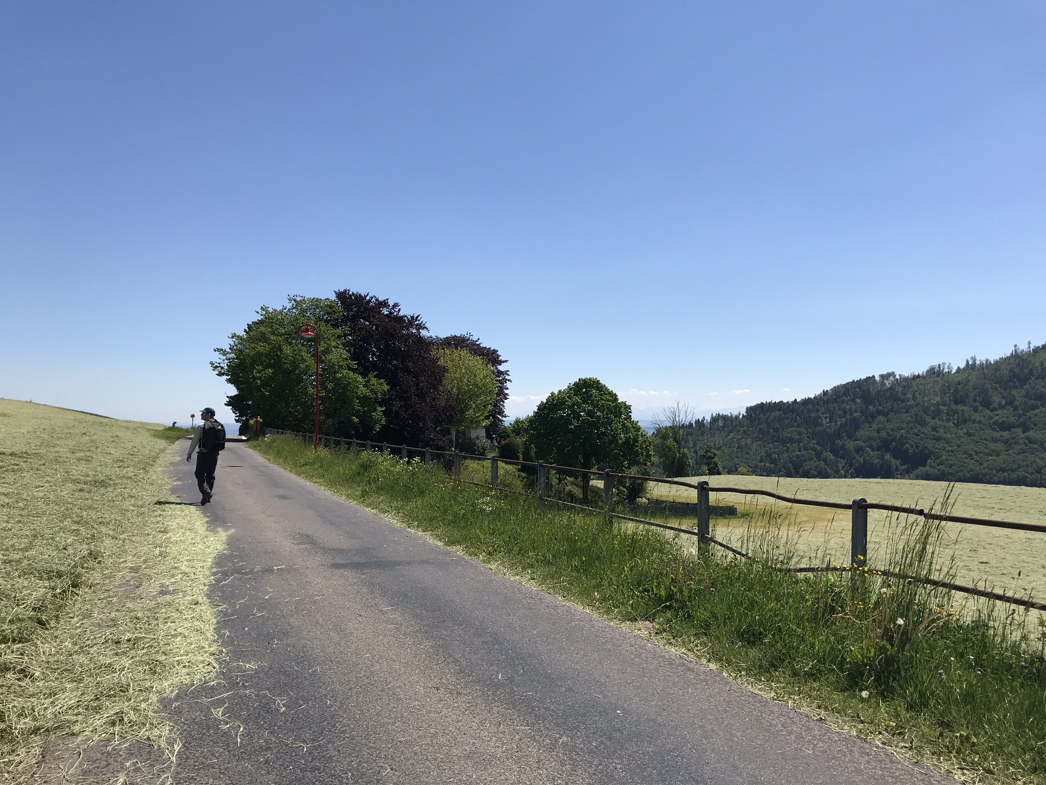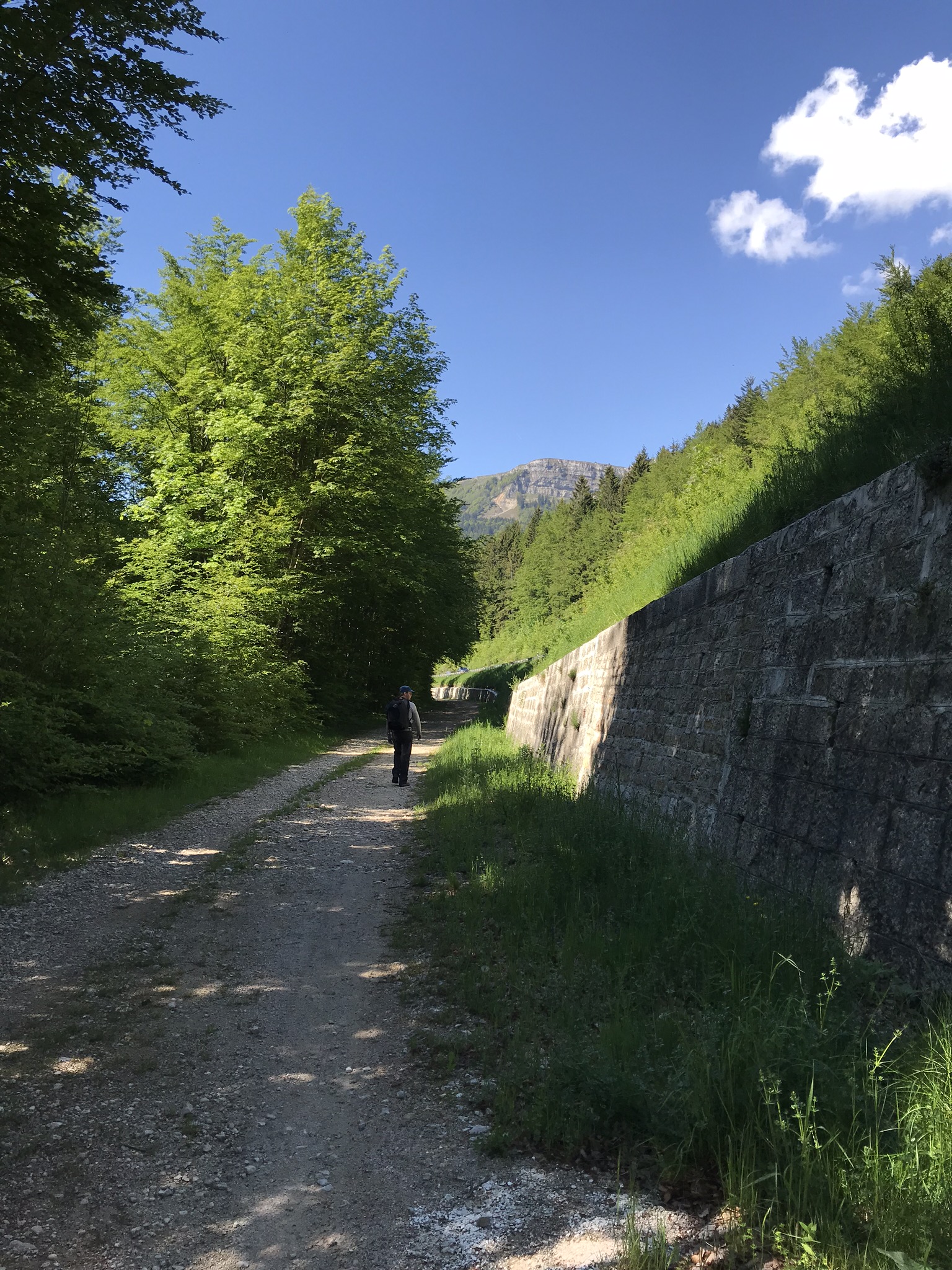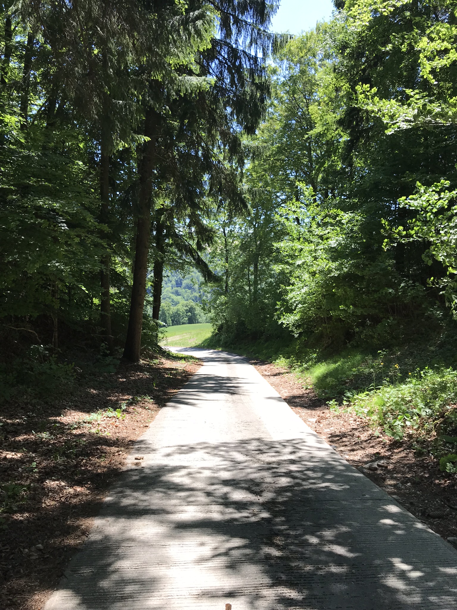 The day was warm and sunny–beautiful for walking. We were tracing one of the oldest paths from France to Switzerland, so there we a lot of roman roads.