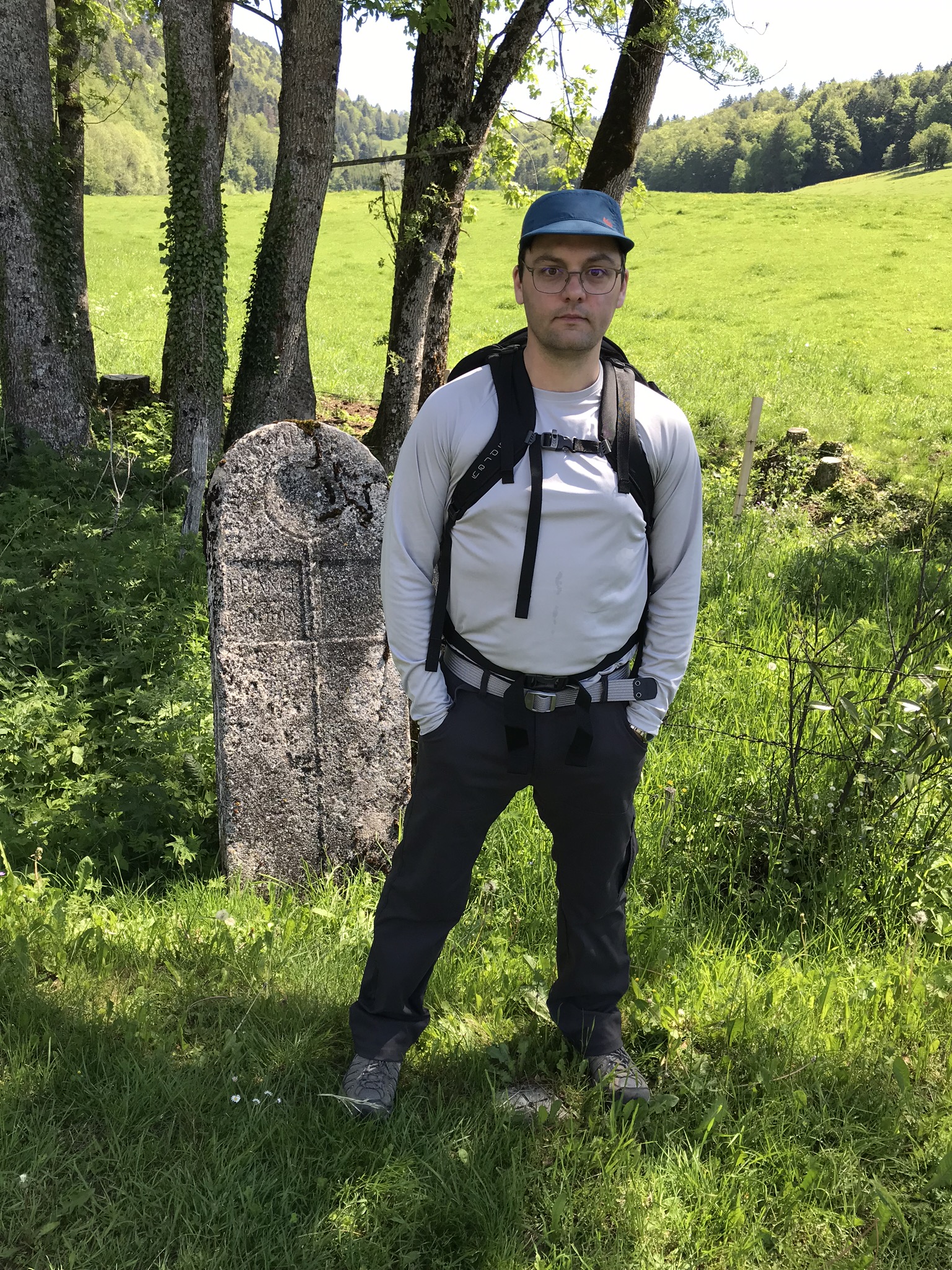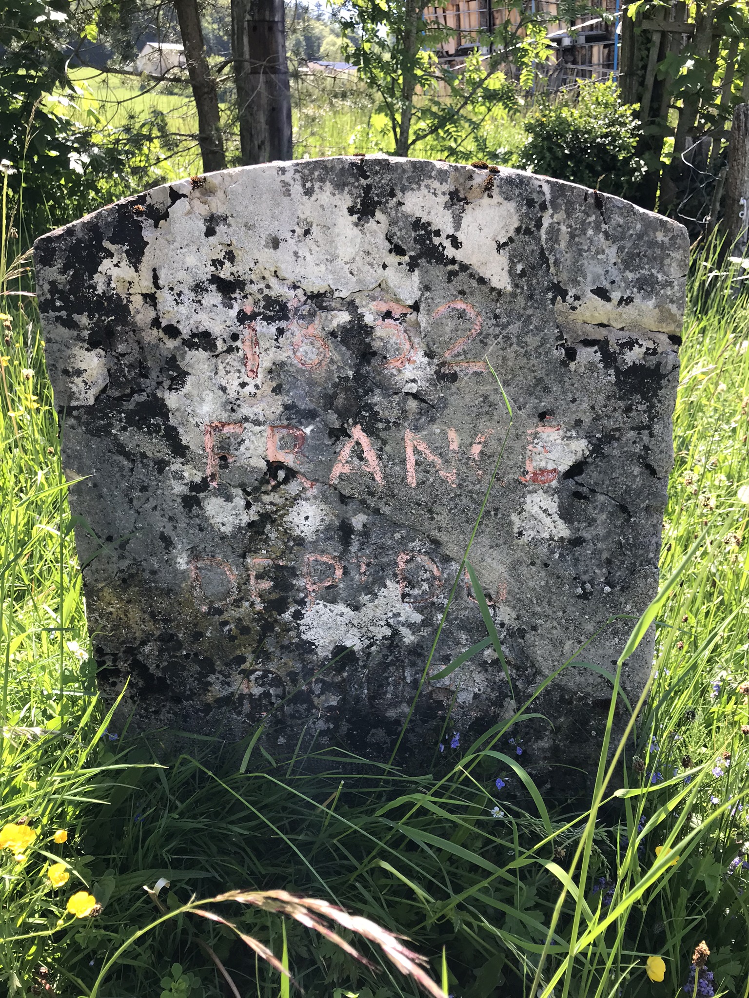 We came to a clearing and saw the old marker for the divide between France and Switzerland. There was no official gate or boarder personnel–just the stone markers. It was charming.