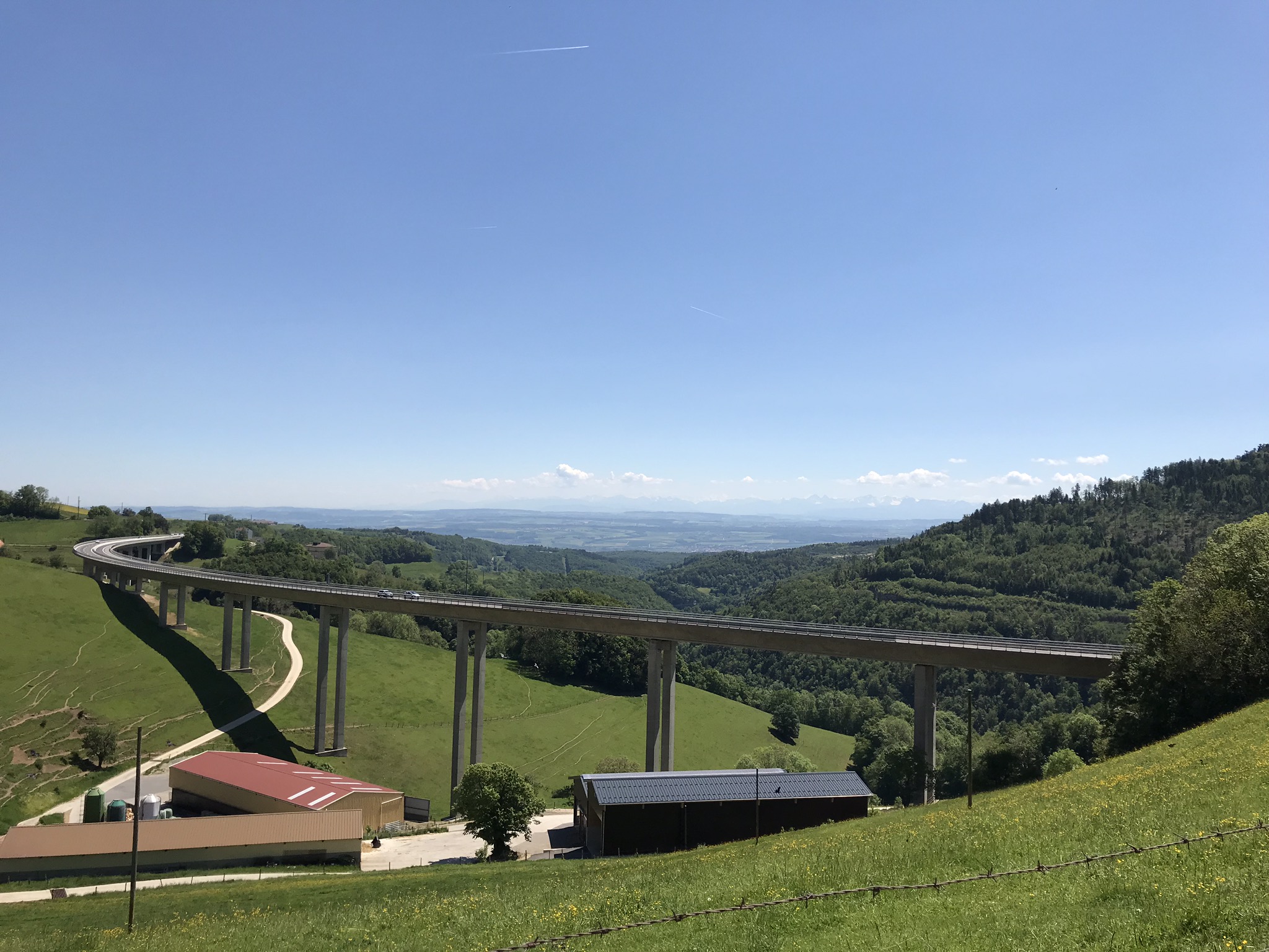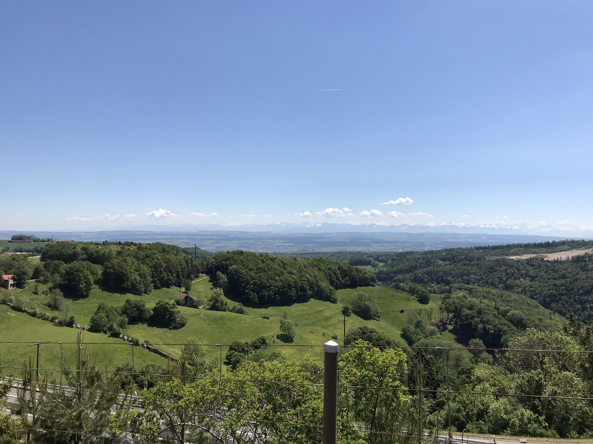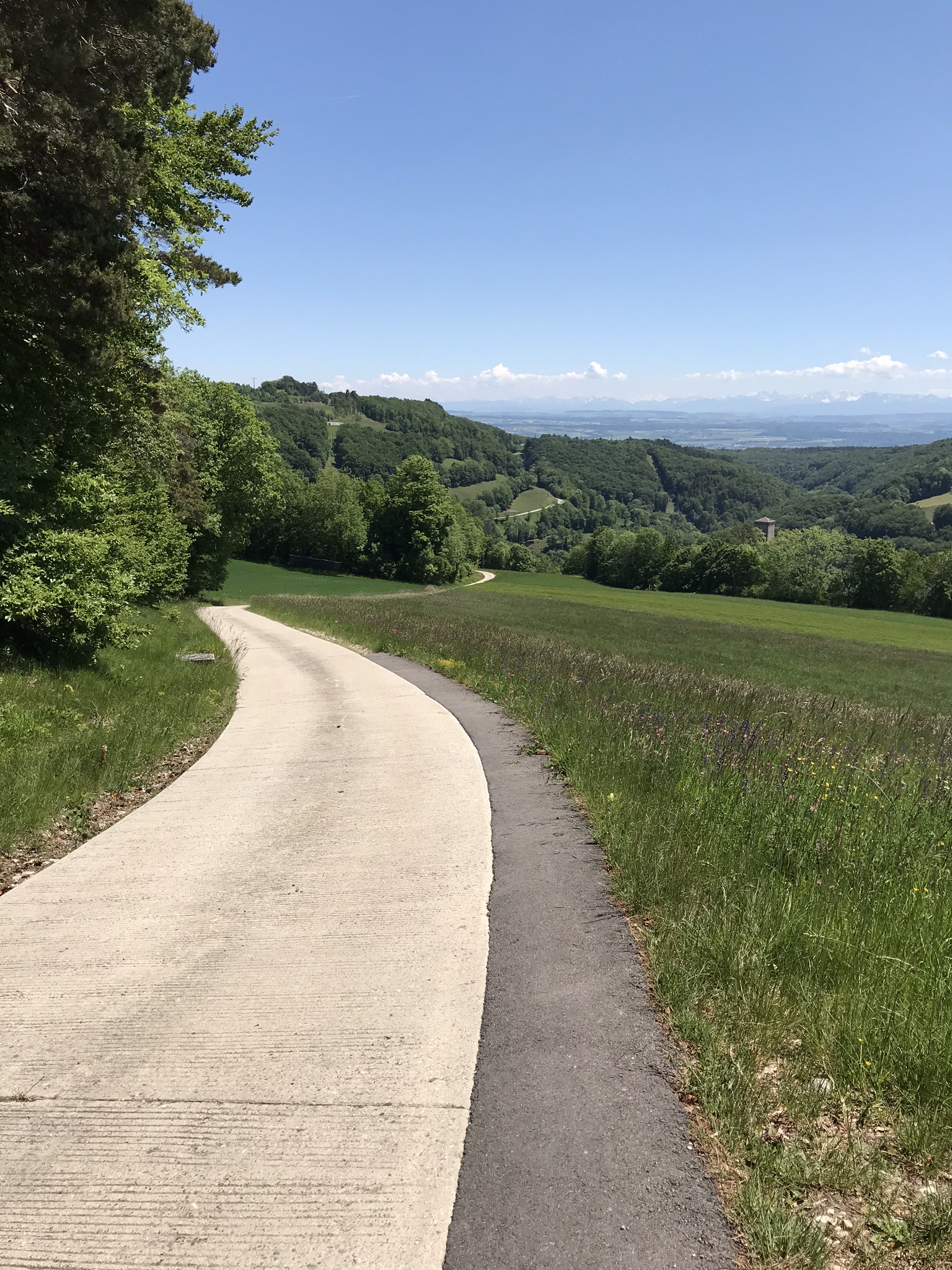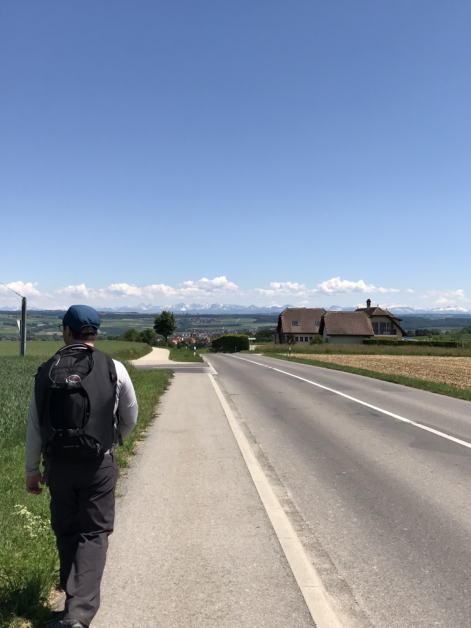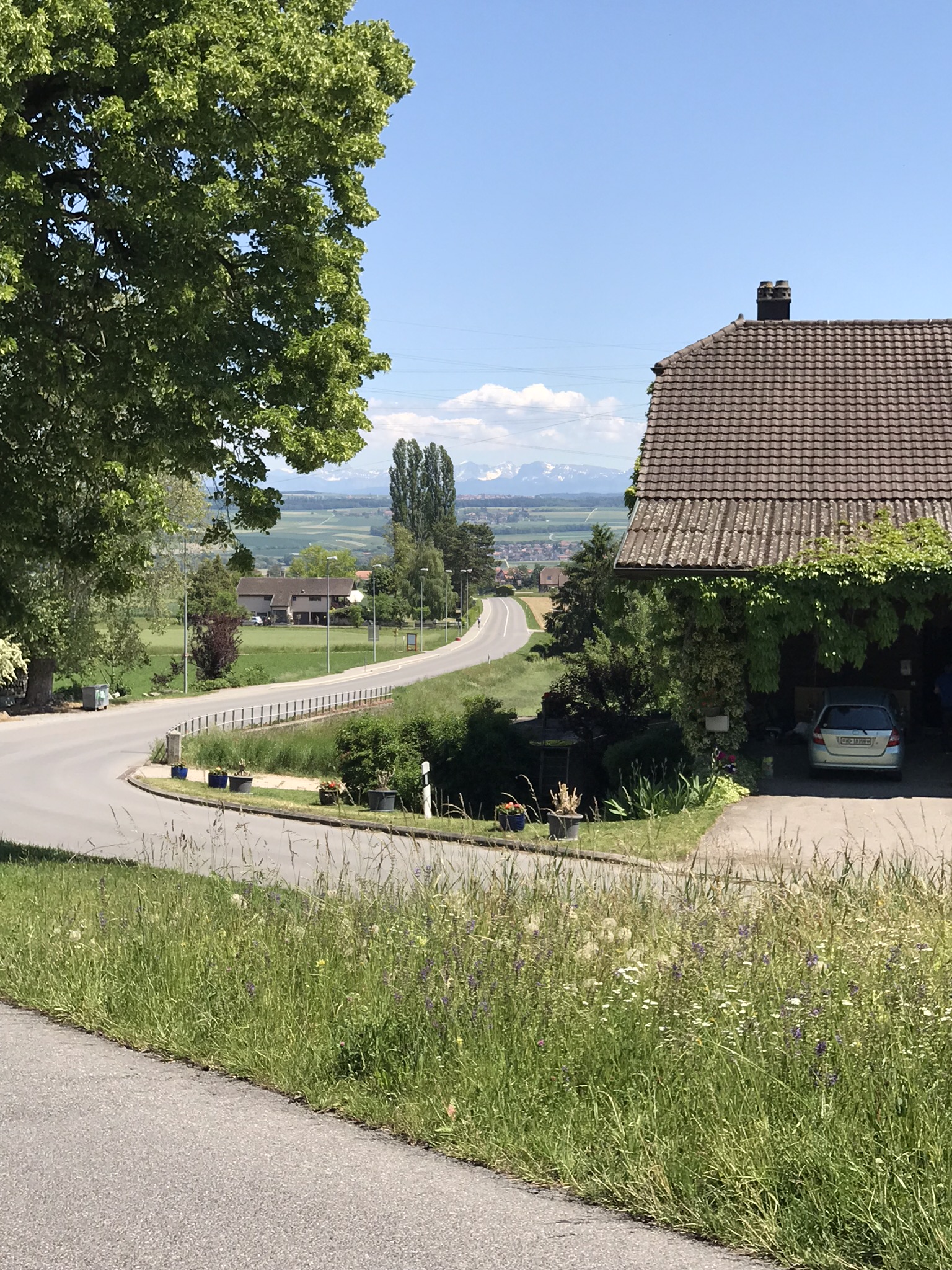 We descended the Jura foothills through cute Swiss villages and soon found ourselves in a valley between the Jura and the Alps.