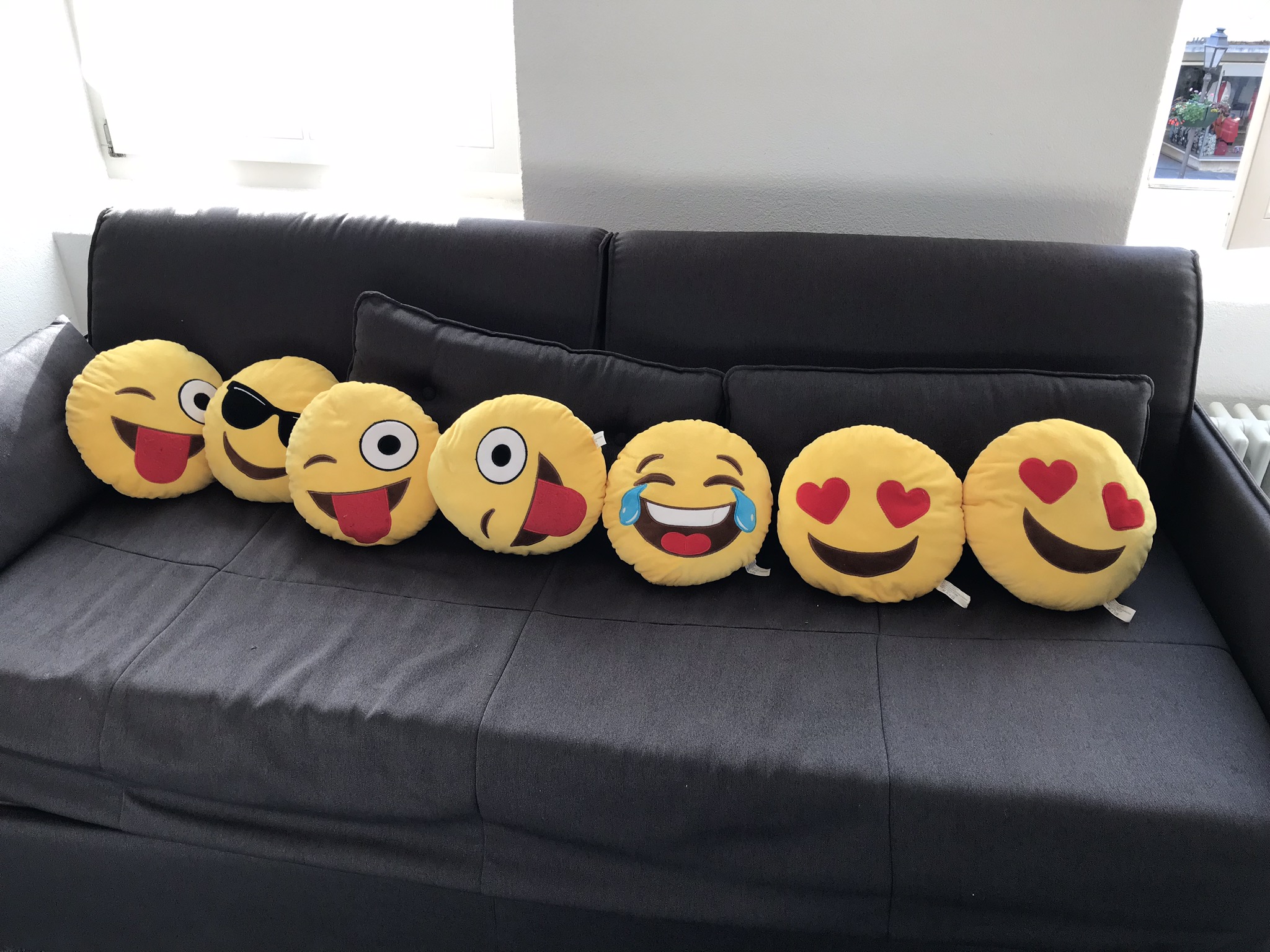 Each room had a theme. The room we were assigned had a smiley-face emoji theme: